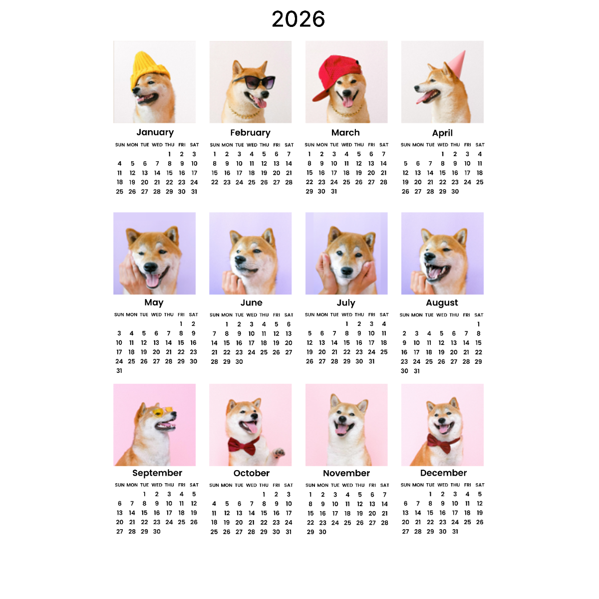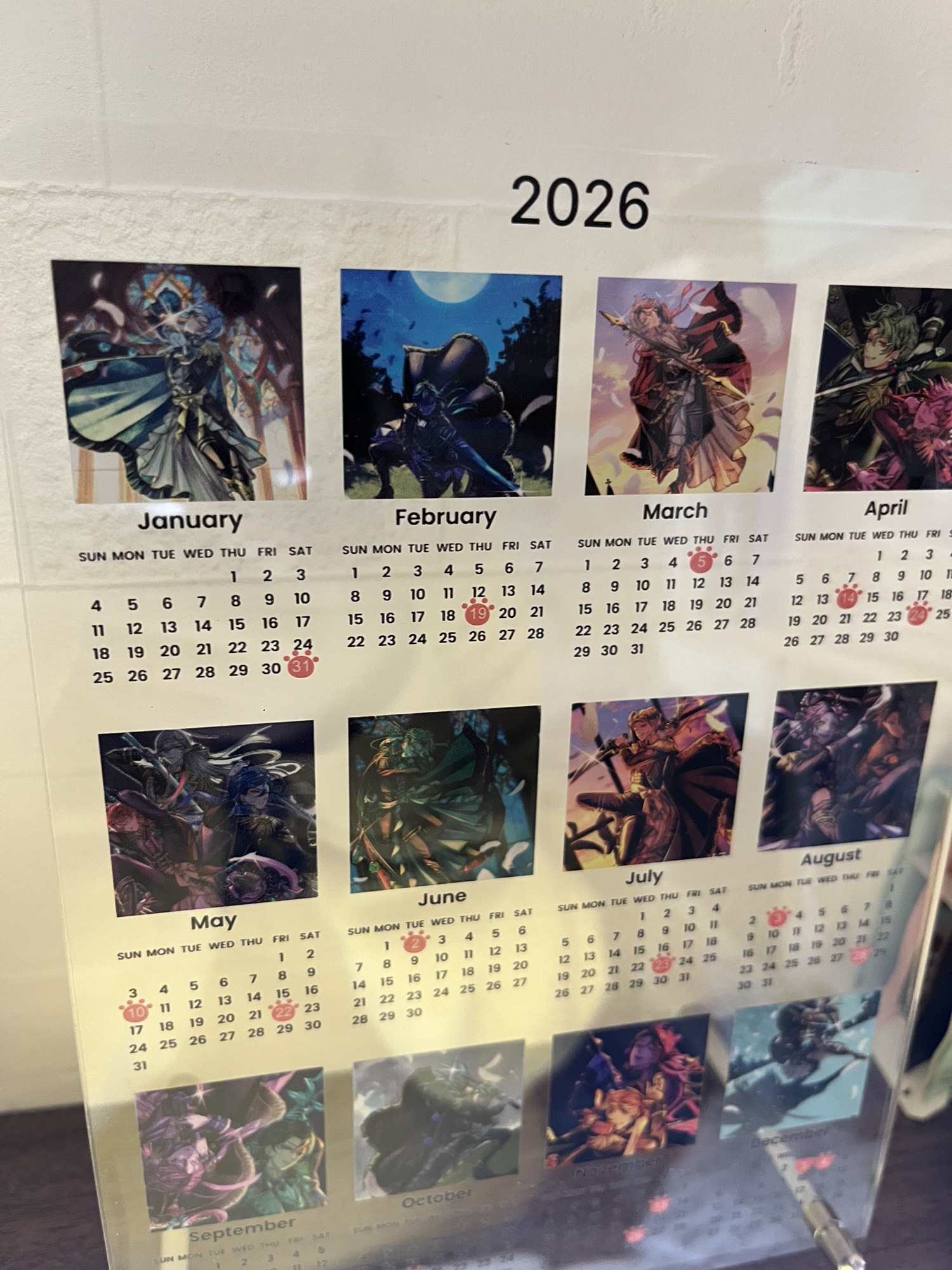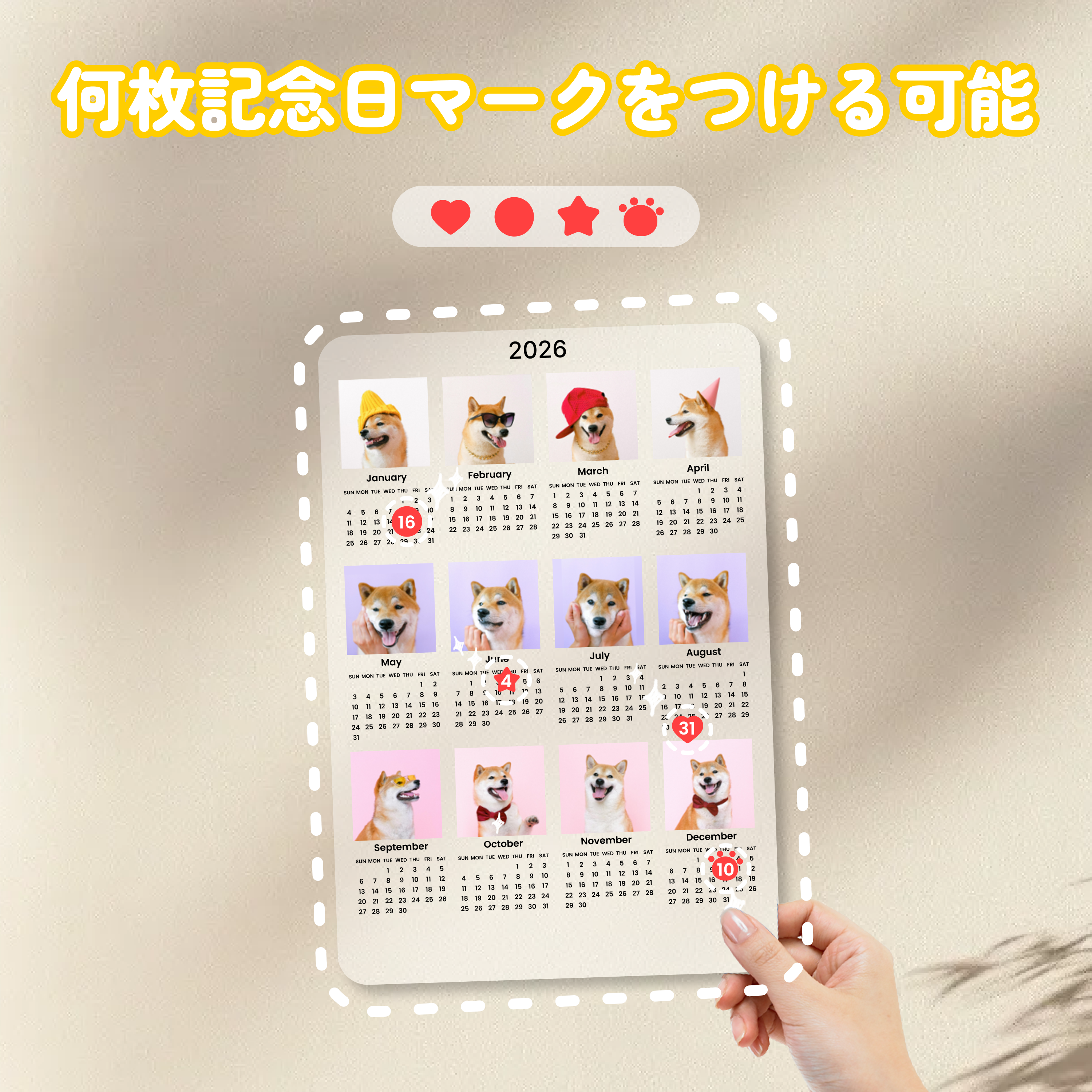 WOWオリジナル 12枚写真カレンダー2025年10月始まり/2026年1月始まり・記念日や誕生日にマークをつける・アクリル・縦型・12枚写真・ライト